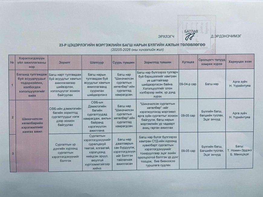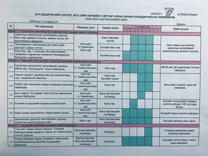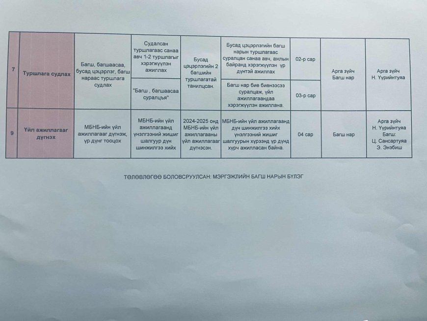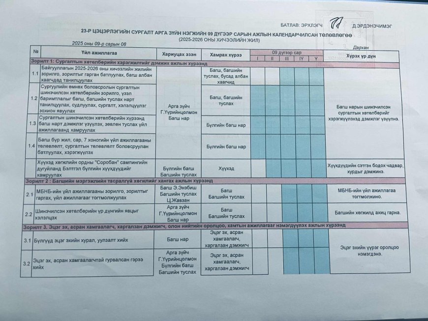 2025 оны 4-р улирлын үйл ажиллагааны төлөвлөгөө