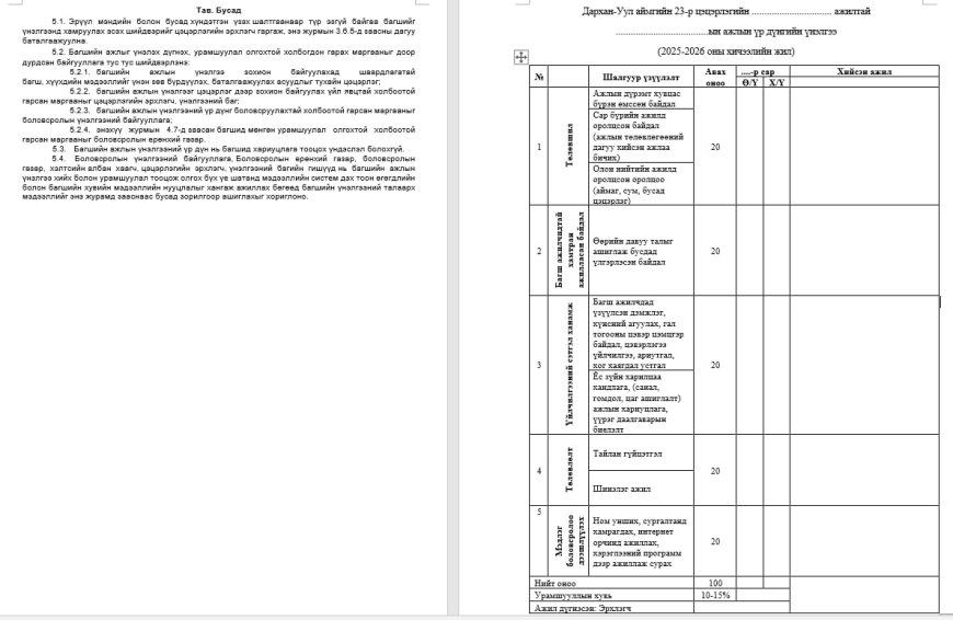 Албан хаагчийн ажлын гүйцэтгэлийг үнэлэх журам